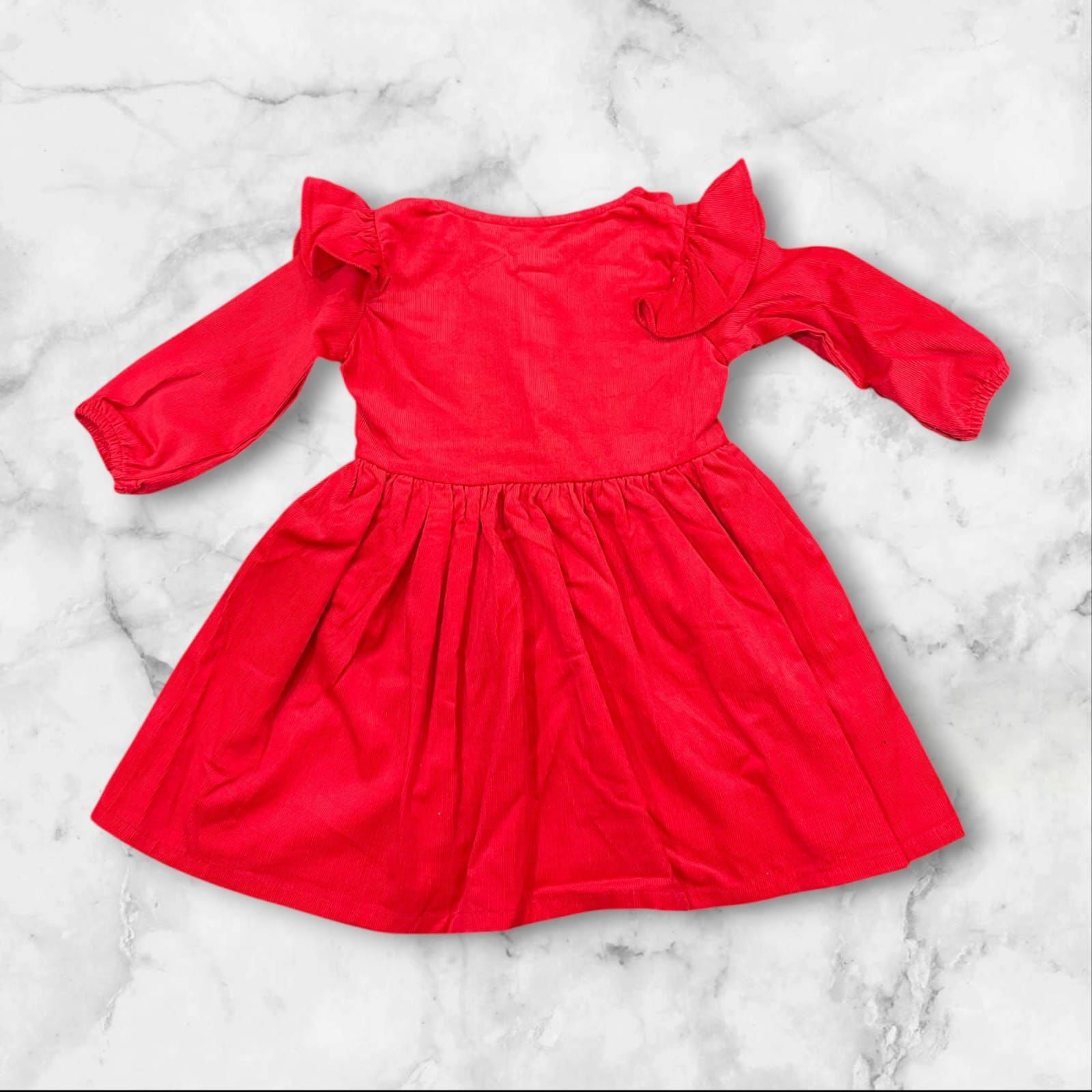 Brighten up your little girl’s wardrobe with this Cubtales Girls Dress. Designed in a striking red shade with delicate floral embroidery on the bodice, ruffle shoulder details, and front button closure, this frock is both elegant and comfortable—perfect for festive occasions, birthdays, or family gatherings.