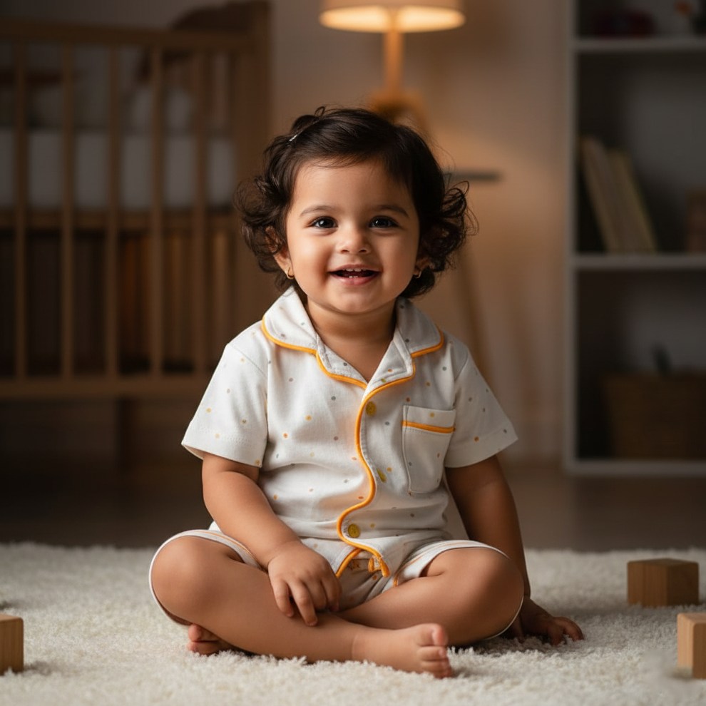 Looking for the perfect mix of comfort and style for your little girl? Our Polka Dot Nightwear Set is designed to keep her cozy while looking adorable. Ideal for bedtime, lounging at home, or a relaxed day indoors.